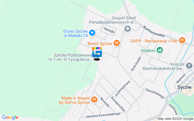 Budynek SZKOŁA PODSTAWOWA NR 1 IM III TYSIĄCLECIA W SYCOWIE zlokalizowany pod adresem ul. Jana Matejki 5, 56-500 Syców o współrzędnych: 51.30972, 17.706951. Poniżej znajdziesz informacje na temat dostosowania budynku do potrzeb osób z niepełnosprawnościami i osób z obniżonym poziomem sprawności z powodu wieku czy choroby i inne użyteczne informacje jak listę spraw, które załatwisz w tym budynku.MNIEJ
