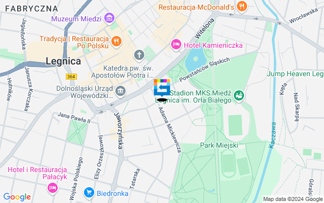 Budynek MŁODZIEŻOWE CENTRUM KULTURY zlokalizowany pod adresem ul. Adama Mickiewicza 3, 59-220 Legnica o współrzędnych: 51.20488, 16.163666. Poniżej znajdziesz informacje na temat dostosowania budynku do potrzeb osób z niepełnosprawnościami i osób z obniżonym poziomem sprawności z powodu wieku czy choroby i inne użyteczne informacje jak listę spraw, które załatwisz w tym budynku.MNIEJ