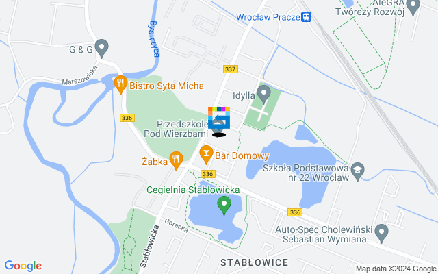 Budynek PRZEDSZKOLE PUBLICZNE POD WIERZBAMI zlokalizowany pod adresem ul. Stabłowicka 95, 54-062 Wrocław o współrzędnych: 51.164455, 16.898158. Poniżej znajdziesz informacje na temat dostosowania budynku do potrzeb osób z niepełnosprawnościami i osób z obniżonym poziomem sprawności z powodu wieku czy choroby i inne użyteczne informacje jak listę spraw, które załatwisz w tym budynku.MNIEJ